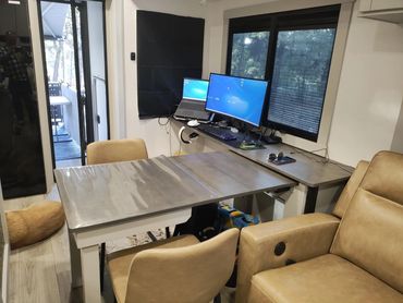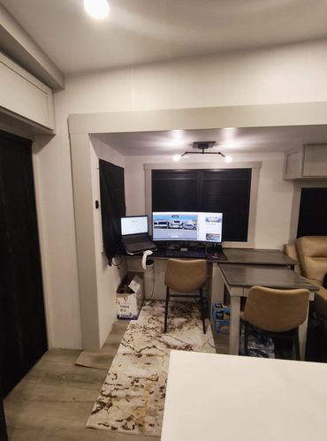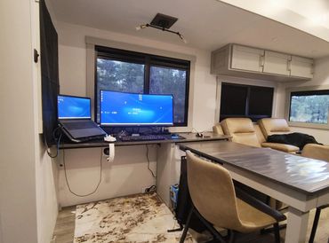 We agreed that to justify our 5th RV, a nonnegotiable would be at least 2 independent working spaces that did not interfere with our camping & living space.